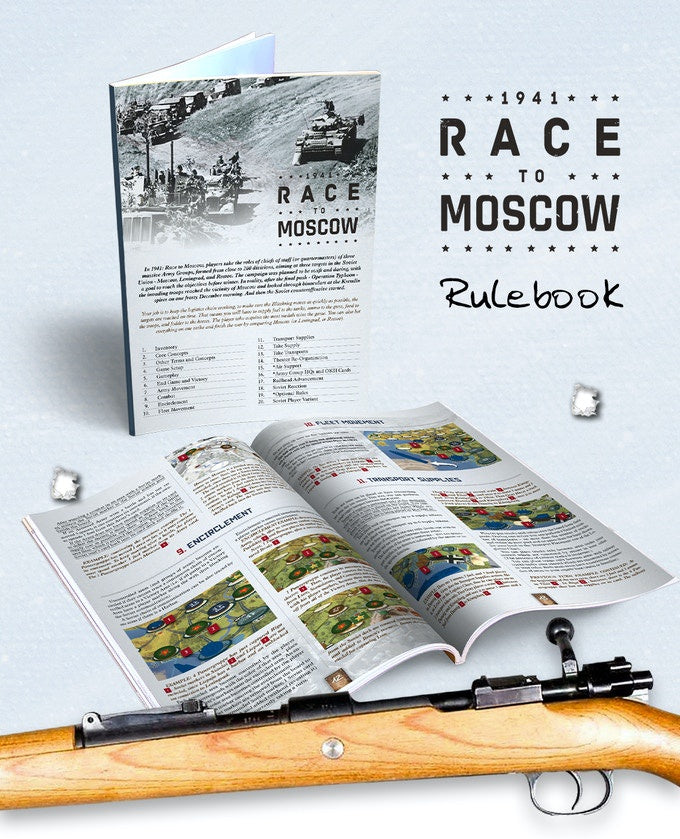 In 1941: Race to Moscow, players take the roles of chiefs of staff (or quartermasters) of three massive Army Groups, formed from close to 200 divisions, aiming at three targets in the Soviet Union: Moscow, Leningrad, and Rostov. The campaign was planned to be swift and daring, with a goal to reach the objectives before winter.