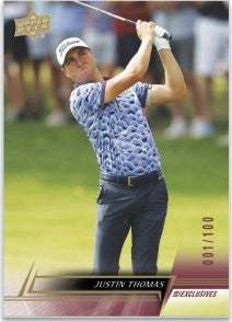 • Ne manquez pas les cartes Scorecard Superstars mettant en vedette certains des meilleurs golfeurs. Cette série de cartes en carton métallisé propose également une superbe gamme de parallèles numérotées : Birdie (numérotée à 100), Eagle (numérotée à 50), Albatross (numérotée à 25) et Ace (exemplaire unique).