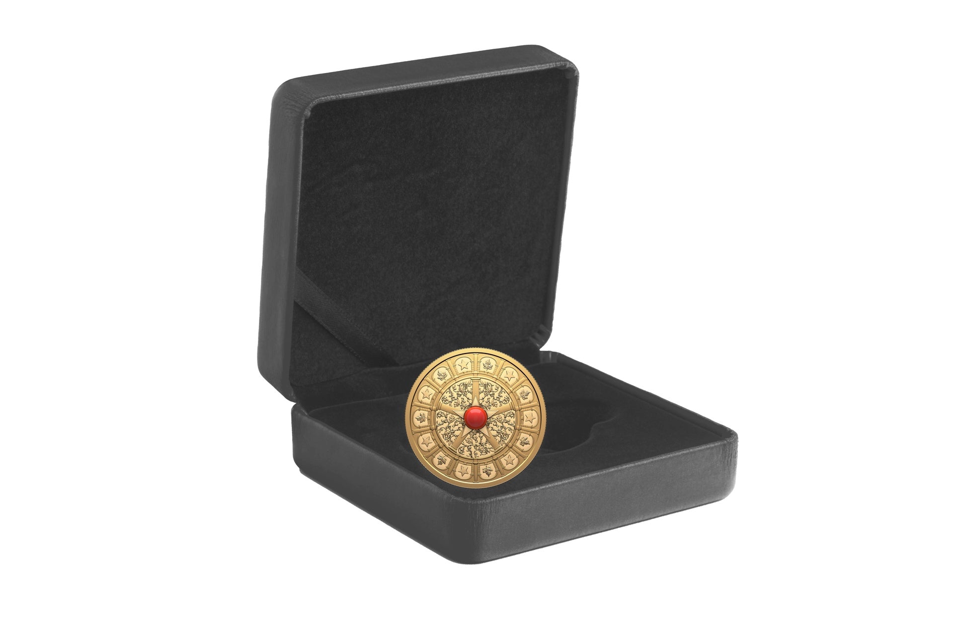 The spirit and culture of the Italian people are alive and well in Canada, and they are well represented on this 99.99% pure gold coin. The coin’s immaculately engraved reverse features an artistic arrangement of deeply symbolic elements that surround the Stella d’Italia positioned at the centre of the design, where the five-pointed emblem is adorned with genuine Italian red coral—a precious symbol of good luck and protection in Italian tradition.