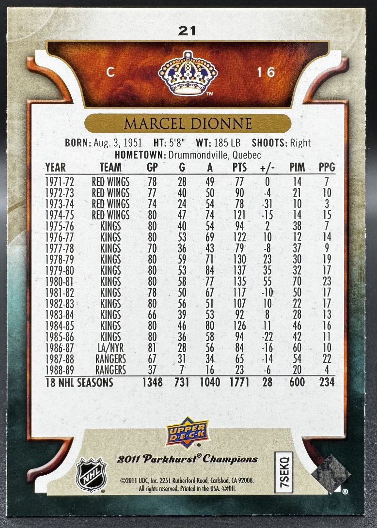 2011-12 UDUD Parkhurst Champions Marcel Dionne 21 Los Angeles Kings Auto