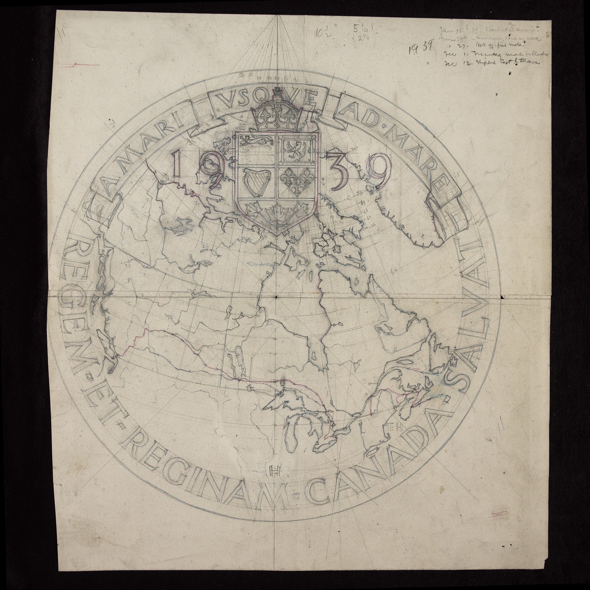 his hand-drawn map of Canada concept for medallions commemorating the