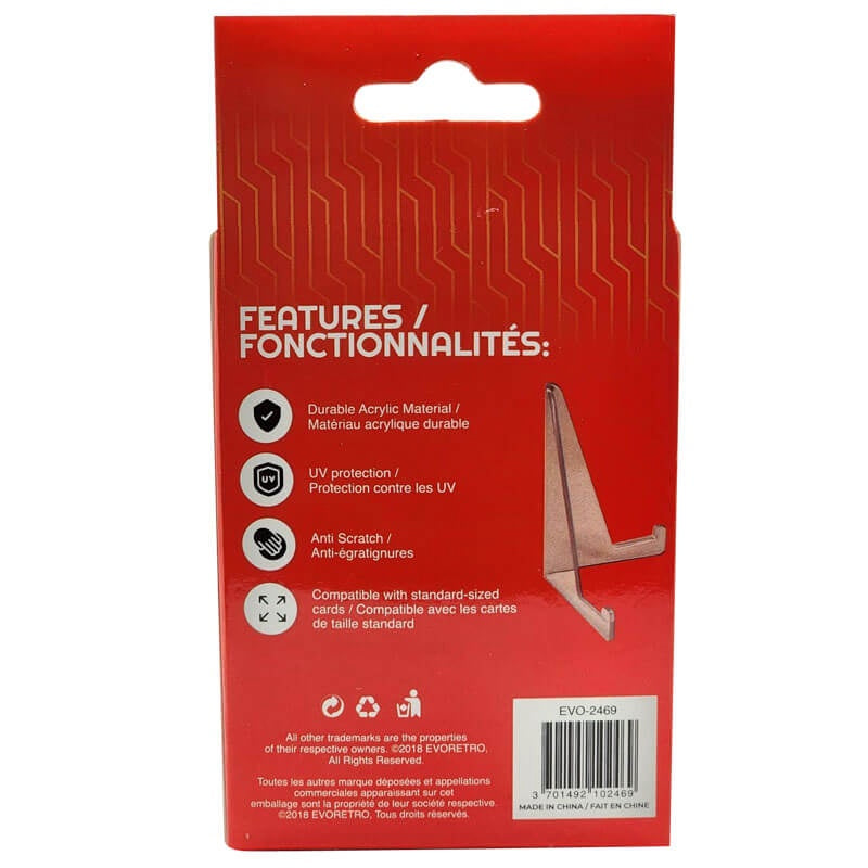Angled Base: Your cards deserve to be shown off in style. With an angled base, this clear card stand lets you show off your rare cards from any angle, showing off your cards in the best light possible!
