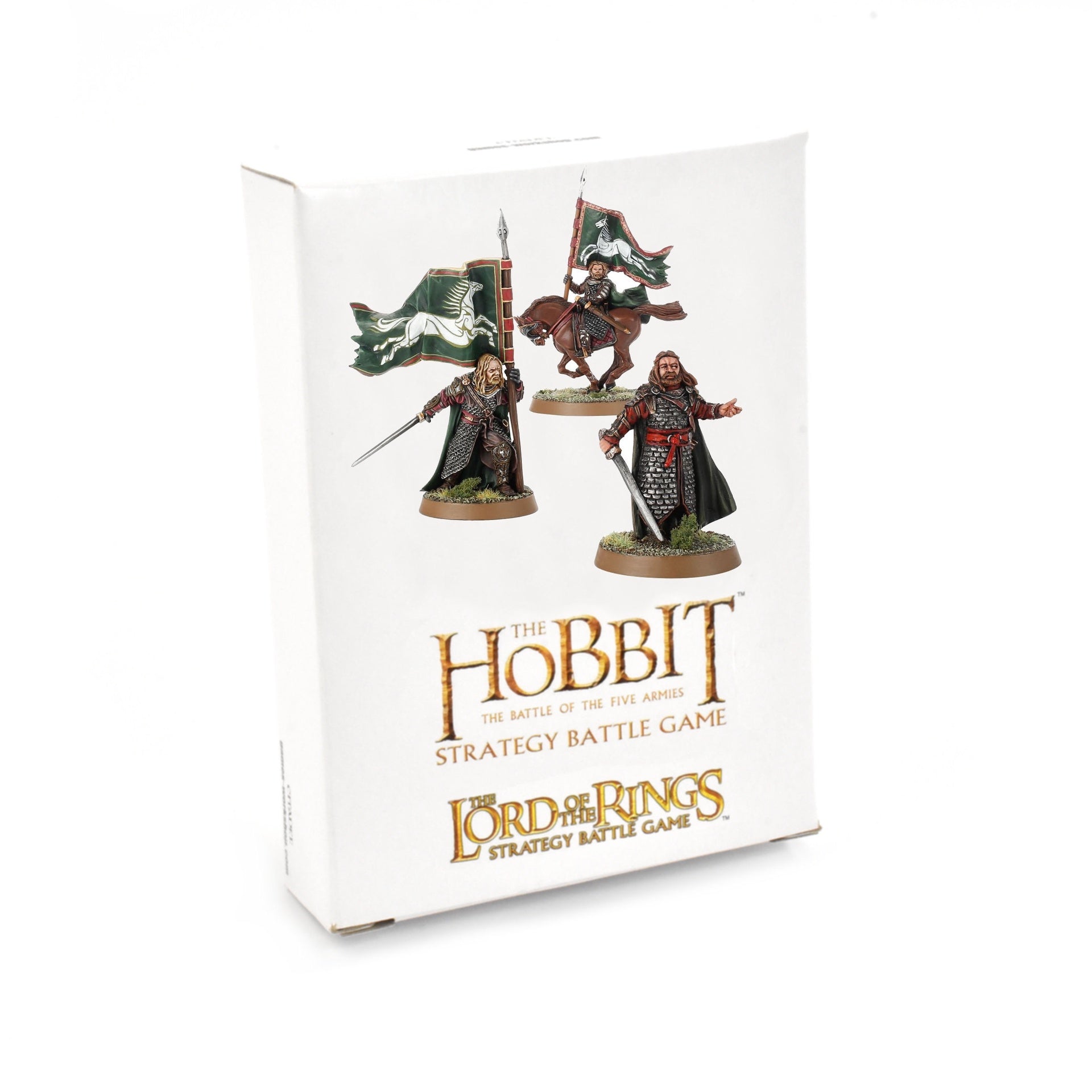 The set contains 3 metal miniatures – a model of each on foot as well as a mounted version of Gamling – and comes supplied with a Citadel 40mm Round Base and two Citadel 25mm Round Bases. Their rules can be found in Armies of The Lord of The Rings™.