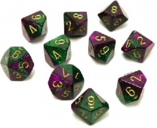 Gemini 10 * D10 Green-Purple / Gold Chessex Dice (CHX26234)