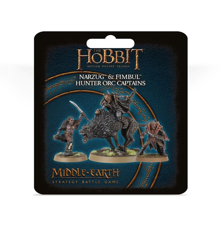 The set contains three resin miniatures – Fimbul (both on foot and riding a Warg) and Narzug – supplied with 2 Citadel 25mm Round Bases and 1 Citadel 40mm Round Base. Their rules can be found in Armies of The Hobbit™.