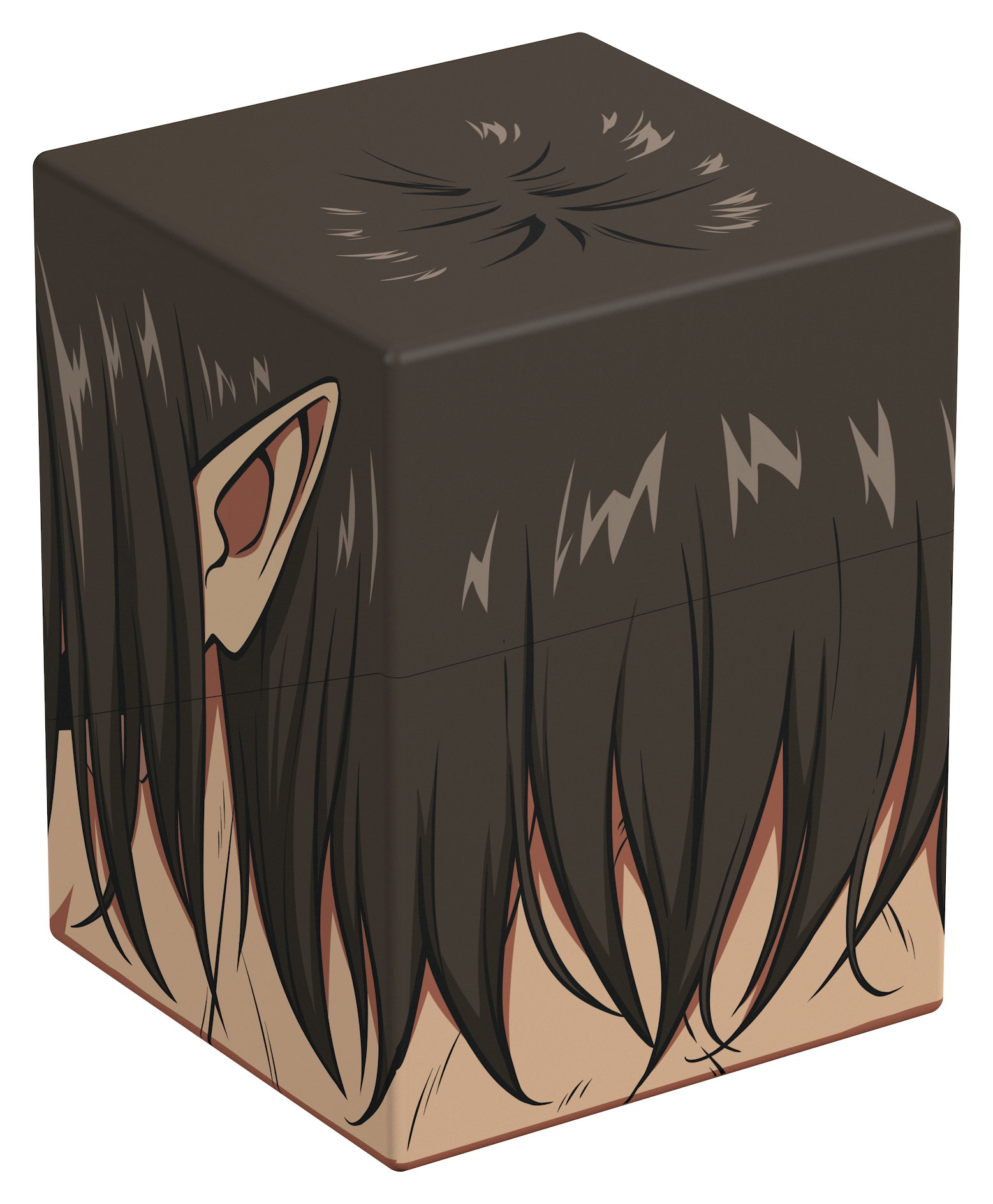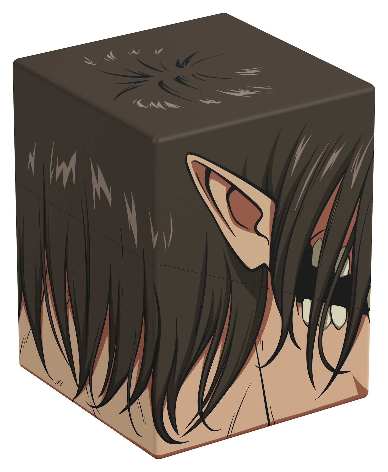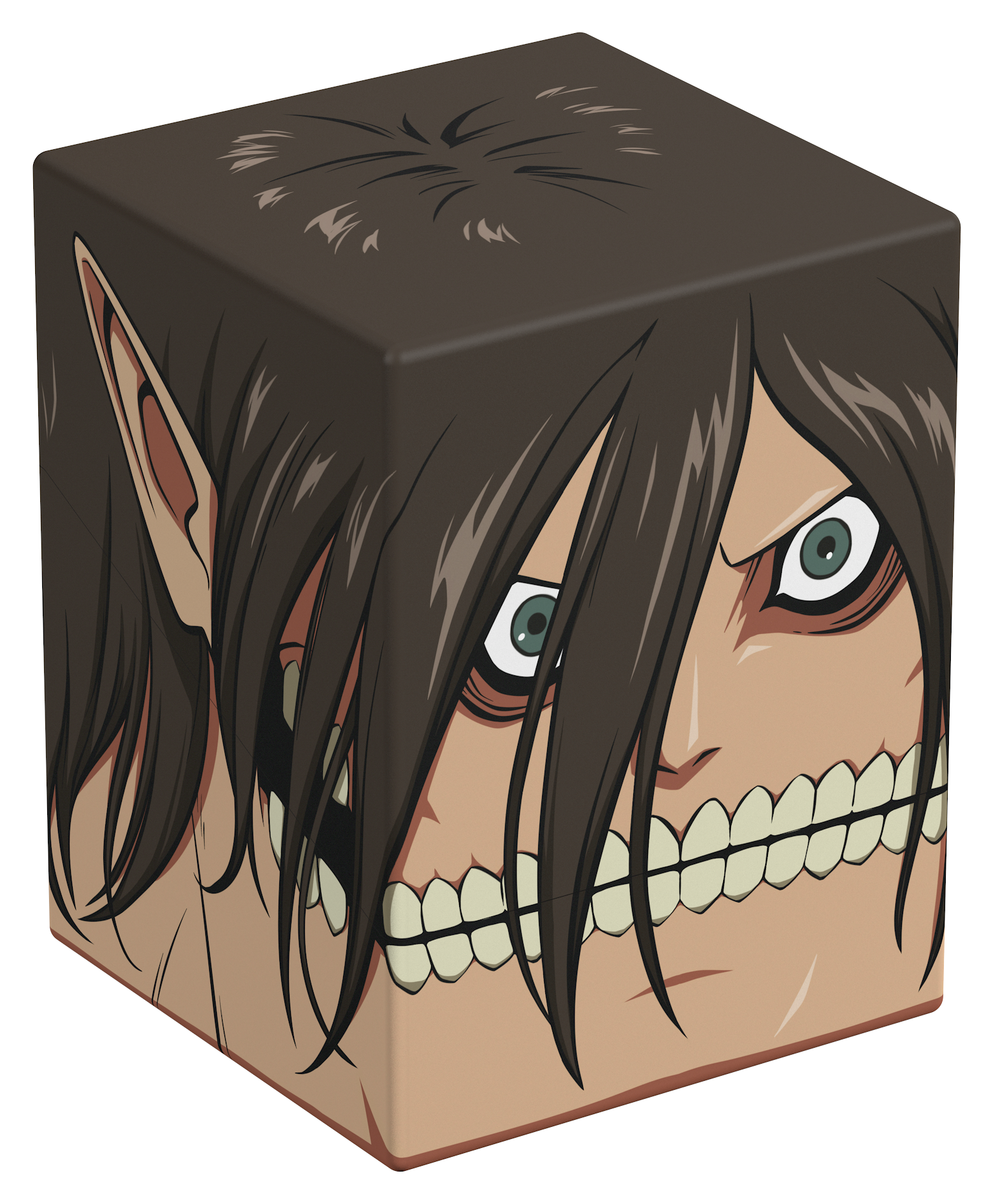 Collectible box for storing TCG decks, tabletop gaming accessories, and/or collectibles. The Attack Titan Squaroe from the Attack on Titan edition holds up to 100 cards in double protective sleeves if used as a deck box. Squaroes are made from 78% renewable resources and fit perfectly into the separately available Collectors Case.