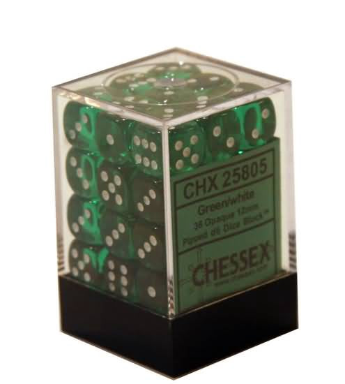 Translucent 36 * D6 Green / White 12mm Chessex Dice (CHX23805)