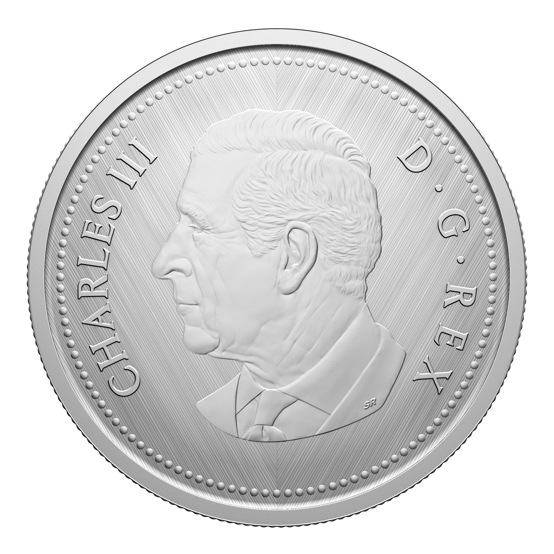 A numismatic tribute to Canada’s five-cent circulation piece, this all-silver coin’s reverse features George Edward Kruger Gray’s classic beaver design, along with the “W” (Winnipeg) mint mark denoting where this coin was struck. The obverse features the effigy of His Majesty King Charles III by Canadian artist Steven Rosati.