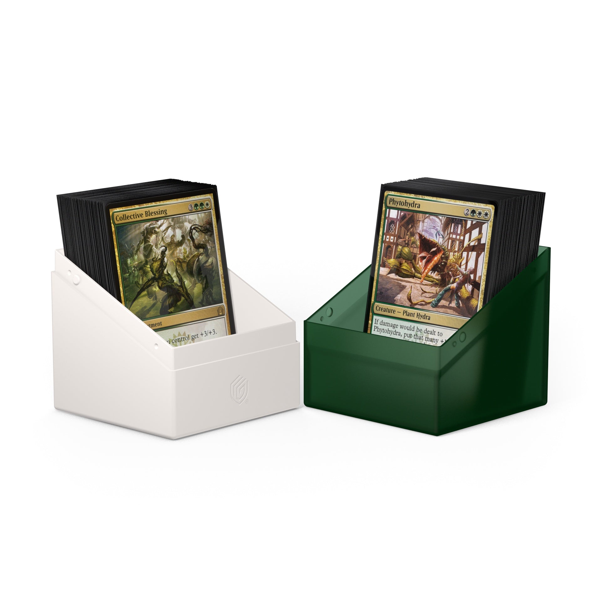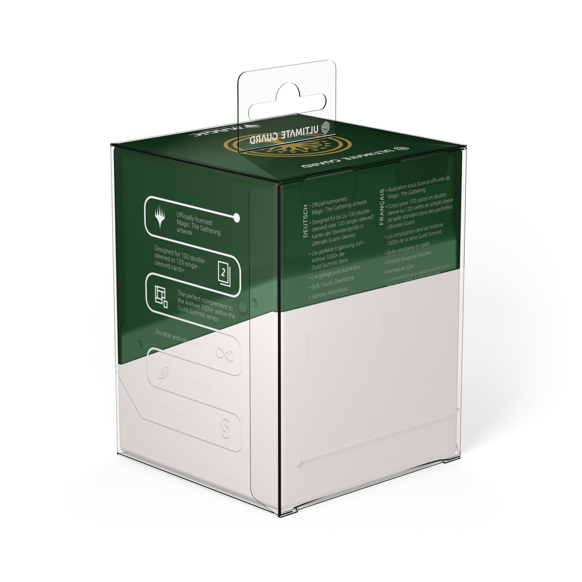 Ultimate Guard celebrates one of the most iconic and popular planes in Magic: The Gathering’s history with the “Guild Summit” series: Ten elegant Boulder 100+ featuring the golden crest of each guild on the semi-transparent deck boxes, all with a silky soft-touch finish. The Boulder 100+ holds up to 100 double-sleeved cards, making it the perfect home for your two-color Commander deck! Don’t miss out on the stunning Arkhive 1000+ Xenoskin from the “Guild Summit” series either, which is the perfect storage place for up to ten Boulder 100+.