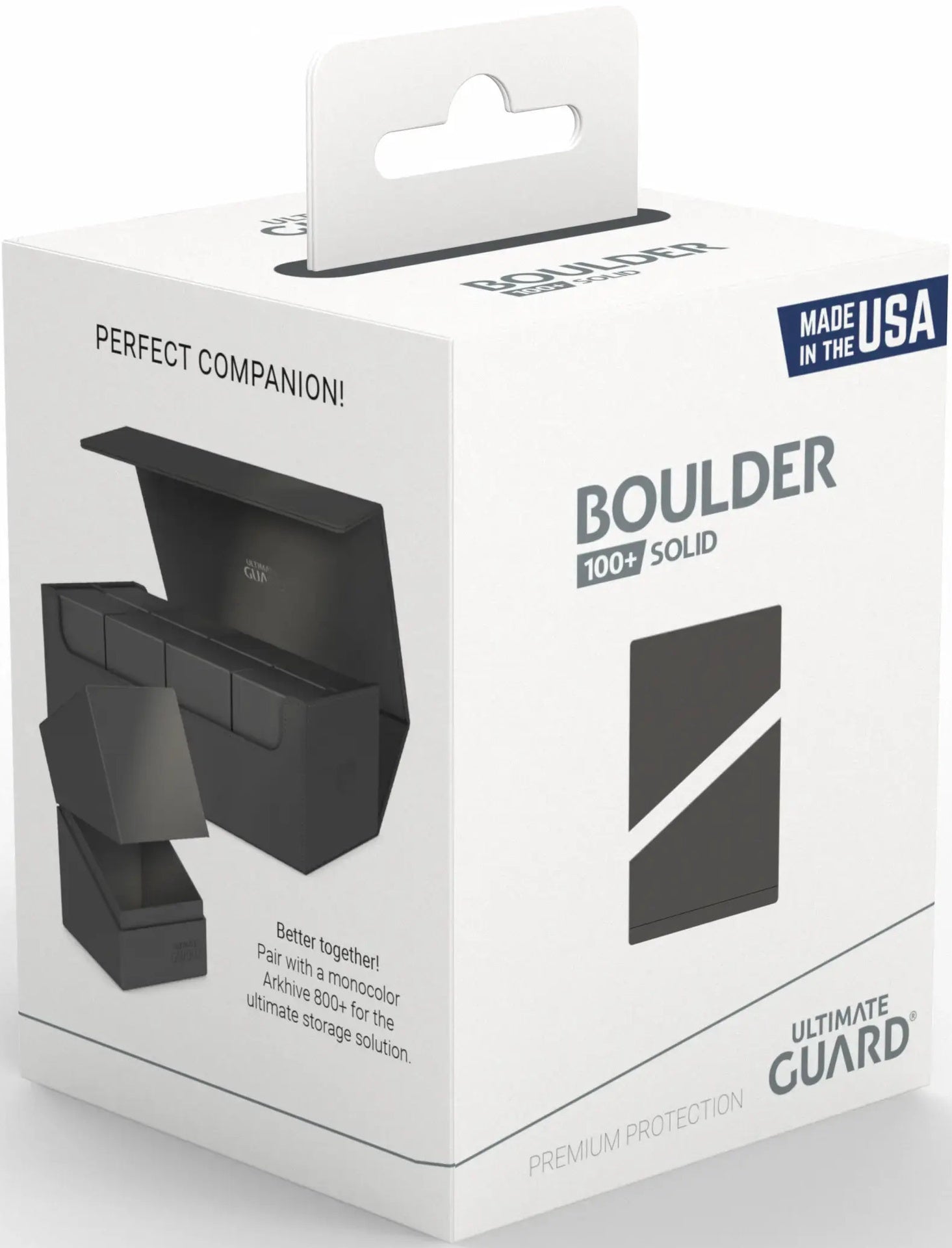 Your favorite Deck box the Boulder 100+, now comes in fully solid colors. Oh…and all the components from the plastic to production, made right here, in the USA! Introducing the Boulder 100+ Solid line. Everything that you have come to love about the incredibly durable deck box, such as: extremely secure enclosure, precision fit for UG sleeves, fitting 100+ double sleeved cards, or 120+ single sleeved cards. All the quality you've come to expect from UG, value you'll love - Made in America.