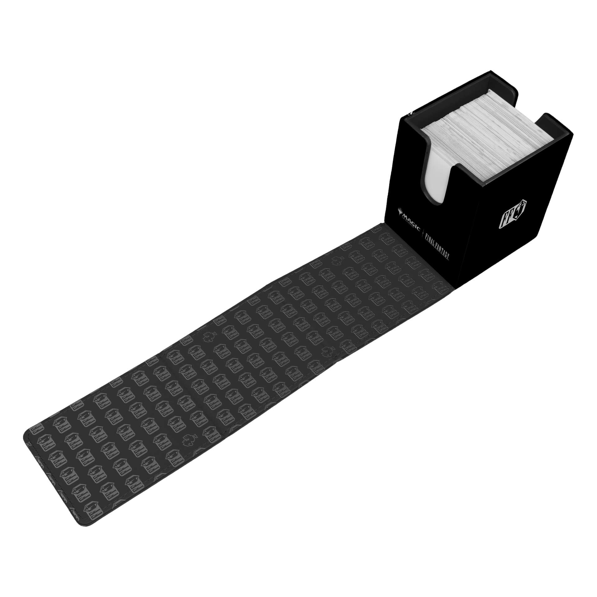 The MAGIC: THE GATHERING®—FINAL FANTASY™ Alcove® Flip Deck Box® features a vibrant, full-color leatherette finish, strong magnetic closure, and dual thumb notches for easy access to your deck. This Deck Box® holds up to 100 double-sleeved standard-size trading cards in Ultra PRO Deck Protector® sleeves.