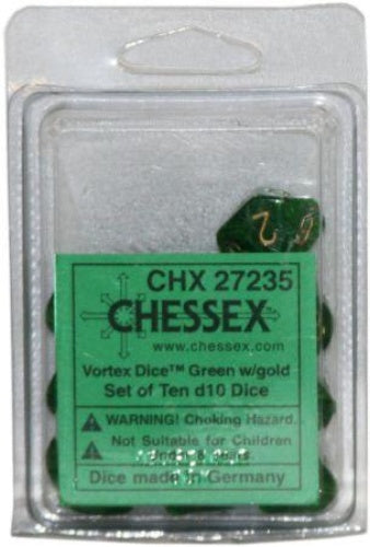 Vortex 10 * D10 Green / Gold Chessex Dice (CHX27235)